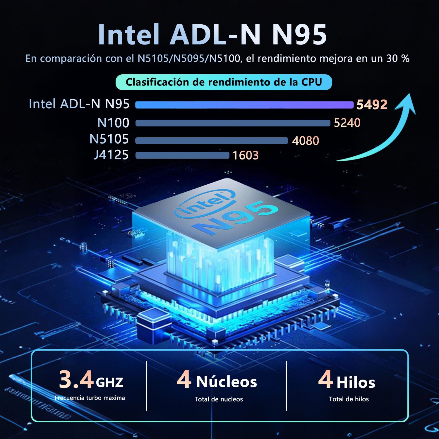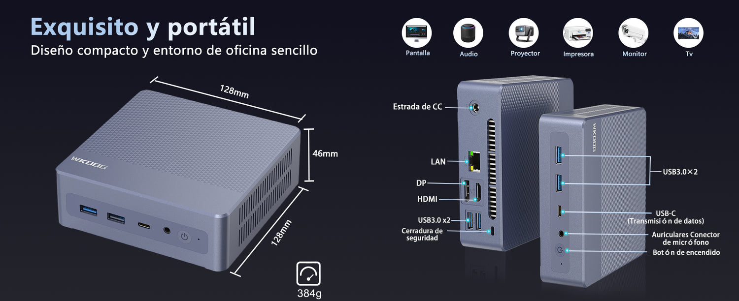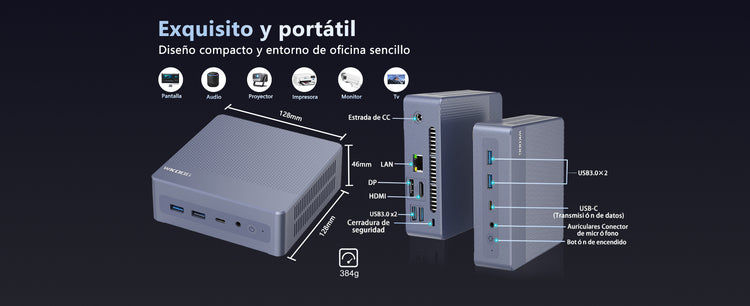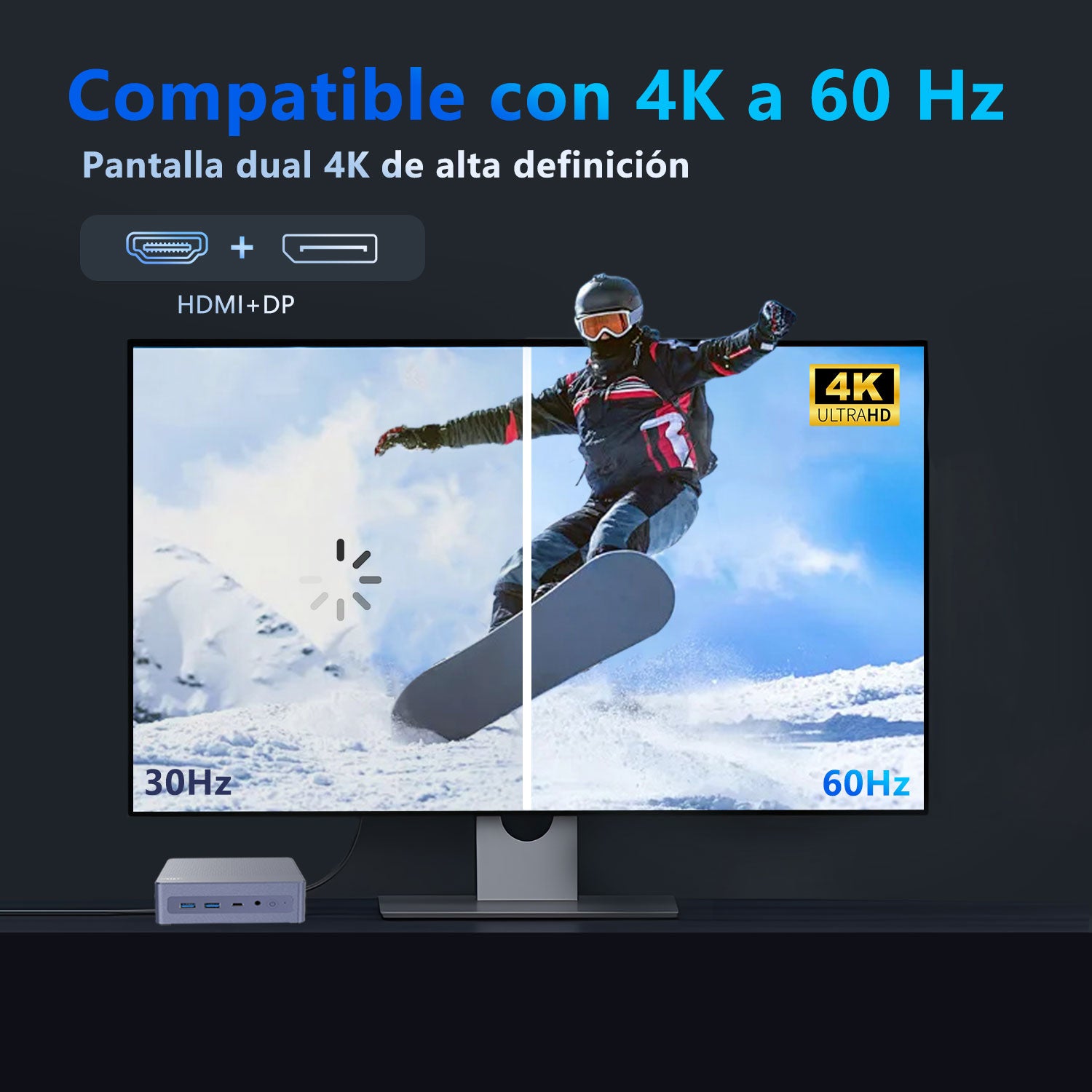 El Mini K5 es un dispositivo informático potente y compacto para aplicaciones eficientes de oficina, entretenimiento y creatividad. Su configuración básica incluye un SSD M.2 2280, que ofrece rápidas velocidades de lectura y escritura, mejorando significativamente la capacidad de respuesta del sistema y la eficiencia de la transferencia de archivos, y gestiona con fluidez el arranque del sistema, la carga de software y el procesamiento de archivos grandes. Equipado con un potente procesador y una tarjeta gráfica integrada, el Mini K5 permite realizar múltiples tareas y ofrece un rendimiento gráfico fluido, satisfaciendo las necesidades del uso diario en la oficina, el entretenimiento audiovisual y el diseño de iluminación.